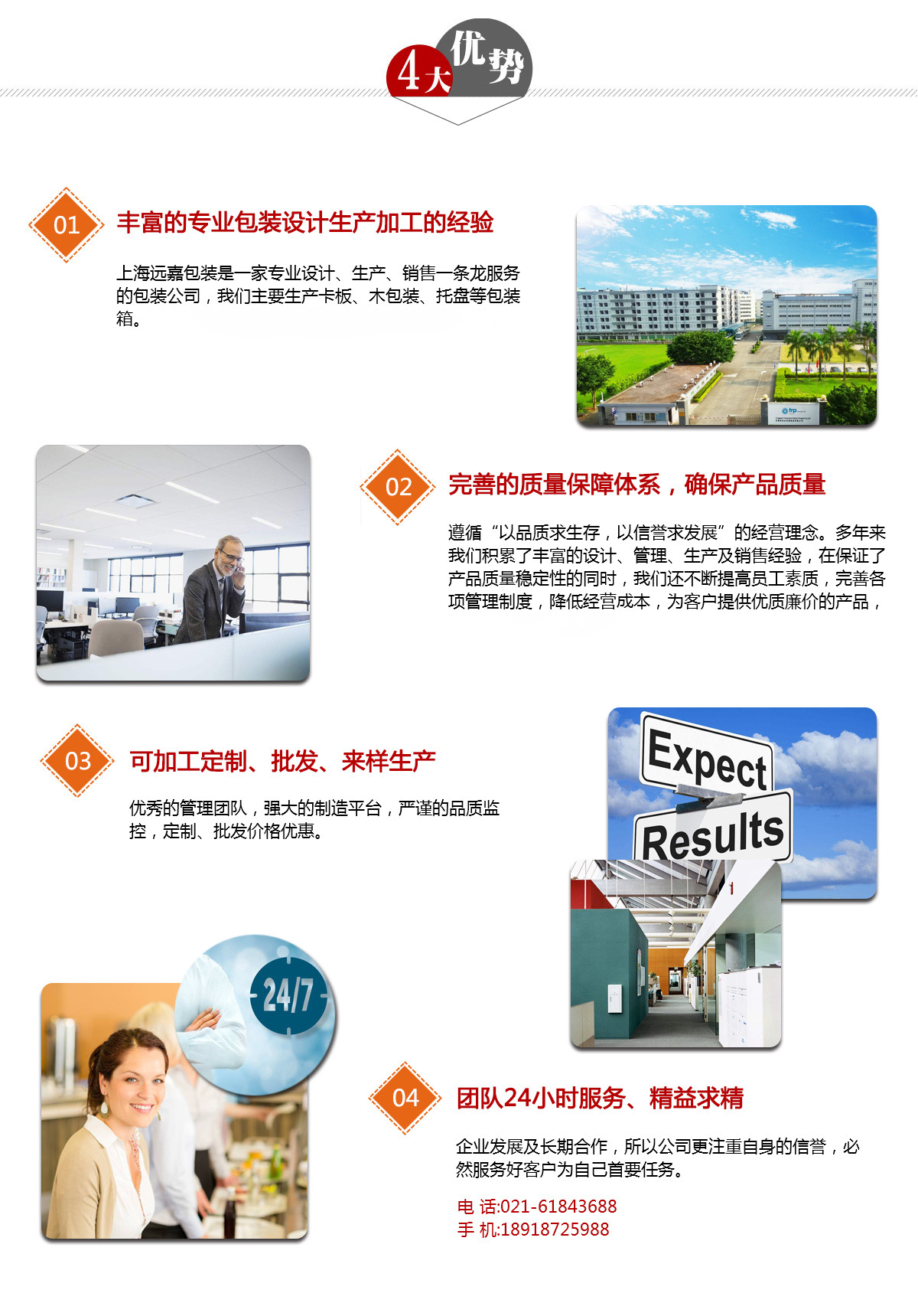 上海遠嘉包裝技術(shù)有限公司擁有數(shù)年包裝設計生產(chǎn)經(jīng)驗。為客戶設計定制各類出口包裝箱,木箱包裝,免熏蒸包裝箱,鋼帶箱,扣件包裝箱,花格箱,大型設備包裝箱,實木熏蒸包裝箱,木托盤,熏蒸及免熏蒸托盤,熱縮膜包裝等。